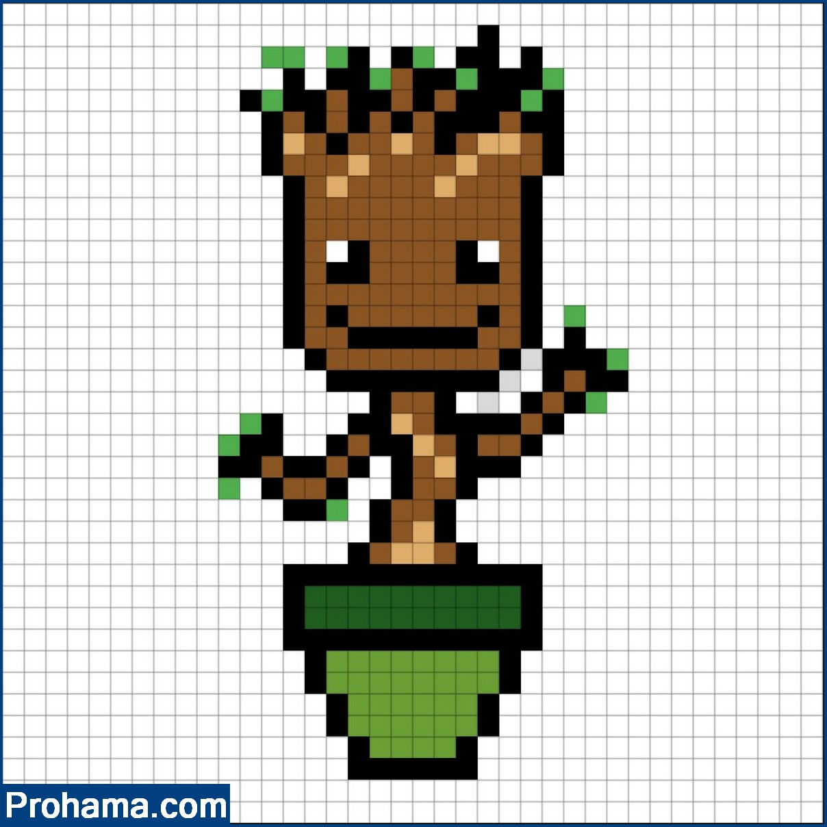 Groot-1 | Size: 19×35 Home/Super Hero Pixel Art groot pixel art grid cute pixel art ideas Download Pattern cute pixel art ideas
